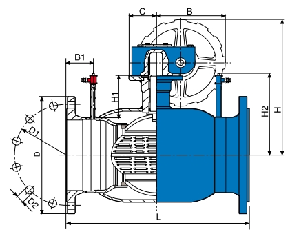 NAVAL DN400 PN16 265539 Кран шаровой фланцевый регулирующий из стали с редуктором